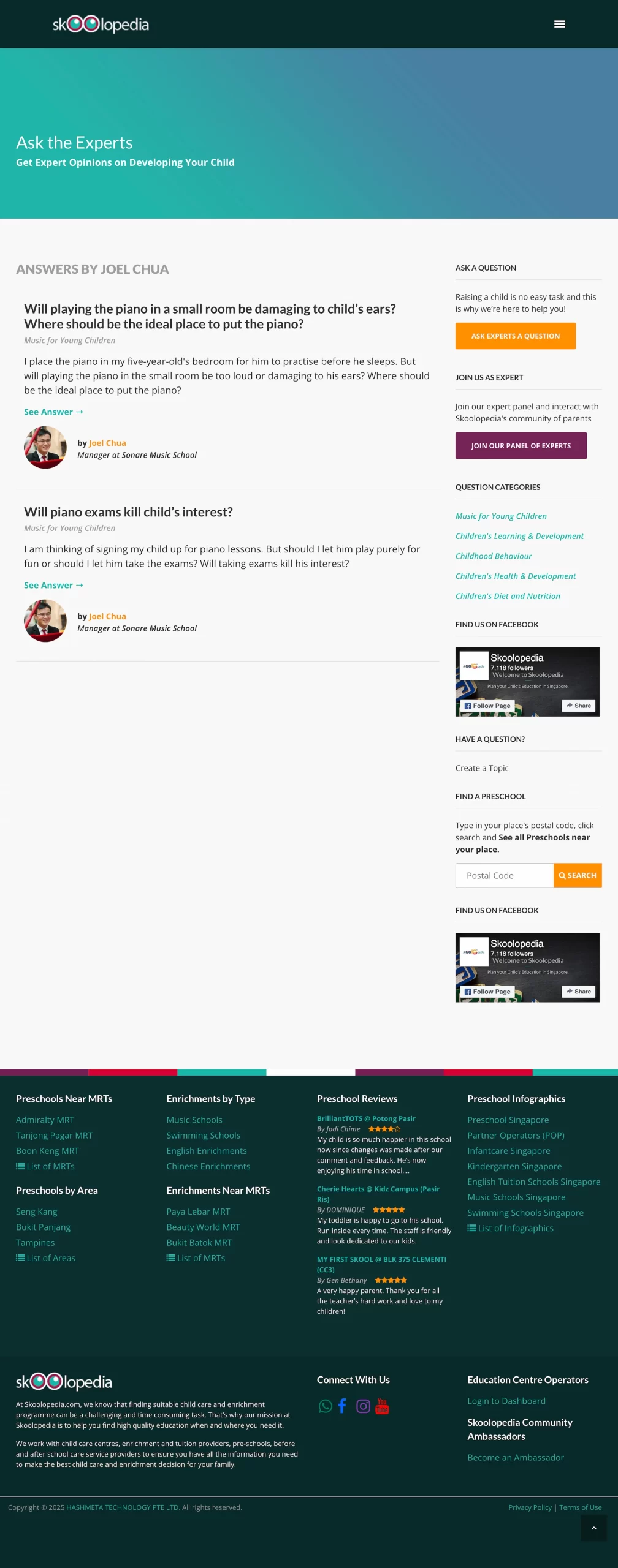 We are proud to be recognized as one of the top music schools in Singapore: